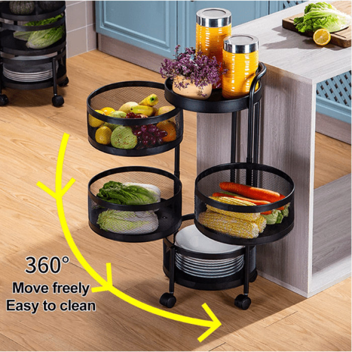 4 Layer 360 Degree Rotating Vegetable Kitchen Rack Round