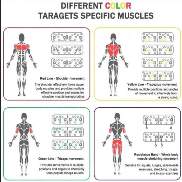 - হলুদ: পিঠ এই সিস্টেম আপনাকে নির্দিষ্ট পেশীর উপর ফোকাস করে ব্যায়াম করতে সাহায্য করে।