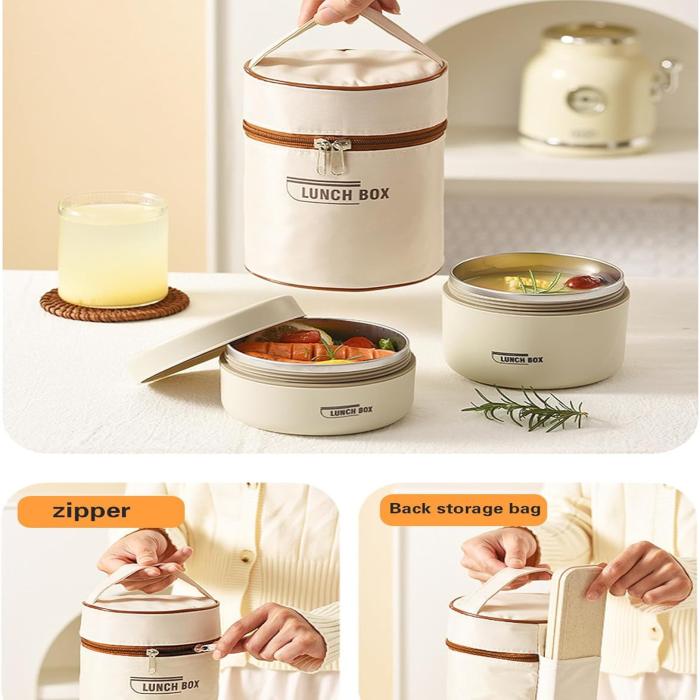 সেটে রয়েছে টেকসই স্টেইনলেস স্টিল কন্টেইনার এবং একটি ইনসুলেটেড স্টোরেজ ব্যাগ, যা খাবারকে সুরক্ষিত রাখে ও বহন করা সহজ করে।