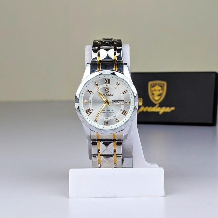 Short Preview: ডায়ামন্ড-কাট গ্লাস এবং রোমান ডায়ালের এই লাক্সারি ঘড়িটি আপনার যেকোনো আউটফিটে যোগ করবে আভিজাত্যের ছোঁয়া। ডেট-ডে ফিচার সমৃদ্ধ এই ওয়াটার রেজিস্ট্যান্ট ঘড়িটি প্রিয়জনকে উপহার দেওয়ার জন্য একদম পারফেক্ট।